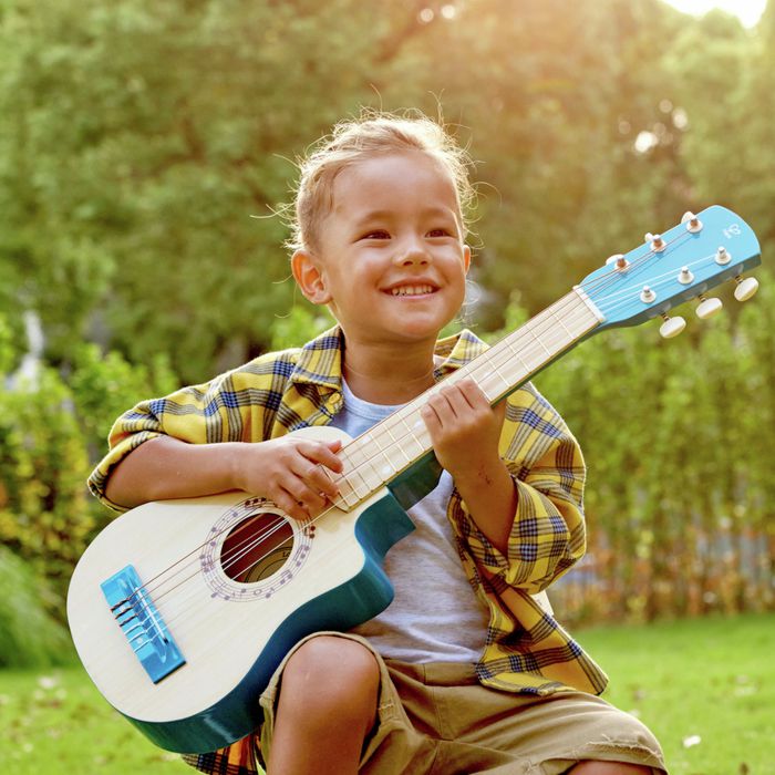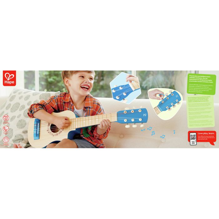 Budite pravo dijete cvijeća s ovom fora gitarom s temom 1960-ih! Križanac klasične gitare i ukulele, savršene je veličine za mlađu djecu koja žele naučiti svirati instrument. Istražite zvukove koji se stvaraju sviranjem svake od šest žica gitare zasebno i zajedno. Pomoću uputa naučite osnove sviranja gitare. Vježbom ćete se poboljšati i početi svirati prave melodije.