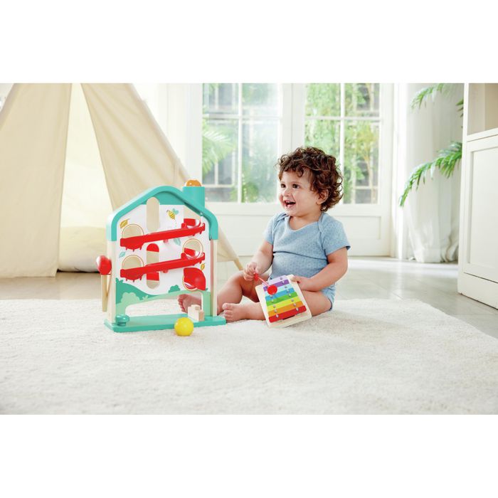 Dvorac Melody ima živopisnu paletu duginih boja koja privlači djecu i poboljšava njihove vještine prepoznavanja boja. Čak i ksilofon nudi zabavan način otkrivanja različitih boja.