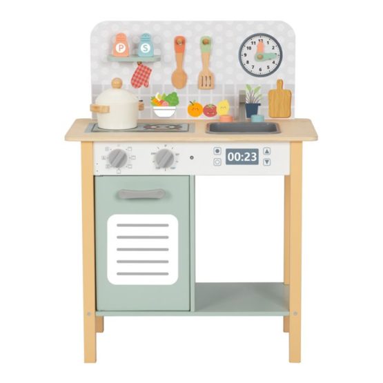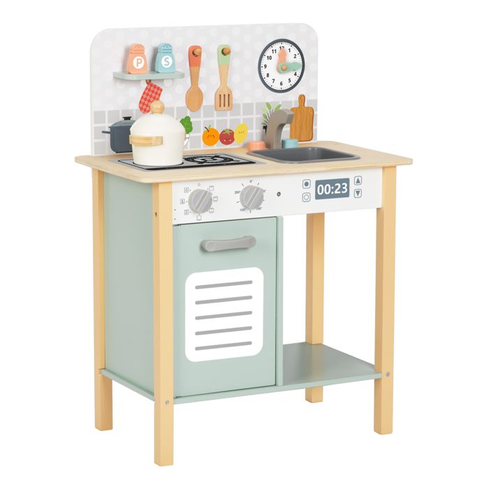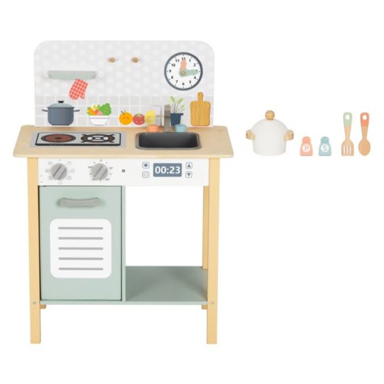 Pretvorite vrijeme igre u pravu avanturu s ovom elegantnom drvenom kuhinjom za igru. S realističnim dizajnom i praktičnim dodacima, savršeno je mjesto gdje mali kuhari mogu eksperimentirati, stvarati i ponovno stvarati omiljene obiteljske trenutke kuhanja.