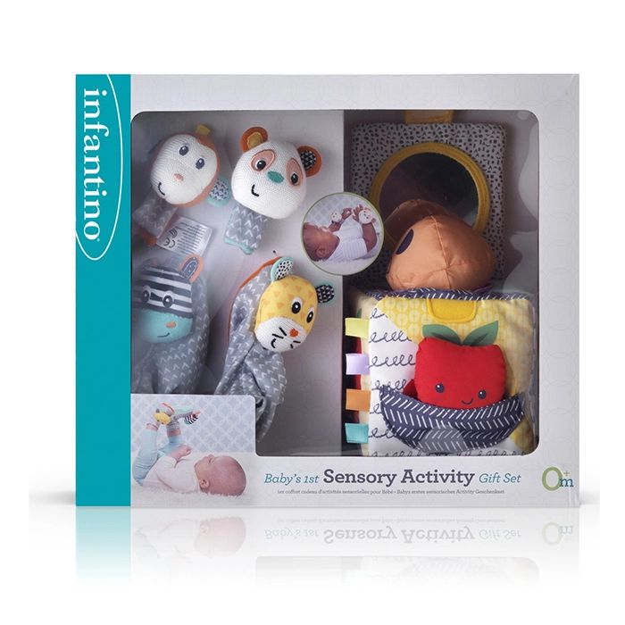 Infantino Senzorna kocka za otkrivanje pomaže znatiželjnim malim ručicama i umovima da otkriju razne razvojne aktivnosti. Osjetila vaše bebe bit će probuđena šarenim zastavicama za violinu, zvukovima šuštanja i zanimljivim teksturama. Divovsko selfie ogledalo uvodi samosvijest i uredno se sprema unutra. Podignite poklopac za beskrajnu igru viri i traži sa slatkim iznenađenjem. Ova mekana kocka za maženje savršene je veličine za držanje mališana i lako se spaja za avanture igre u pokretu.