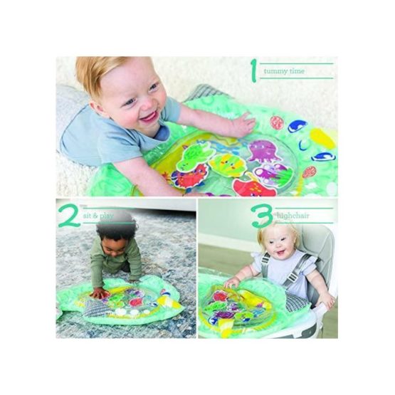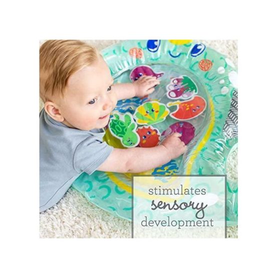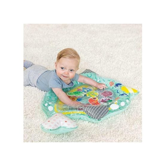 Podloga za vodu, savršena za igru ​​dok beba leži na trbuhu ili sjedi u stolici. Napunite jastuk vodom. Unutra se nalazi 6 morskih životinja koje će plutati i pomicati se kada dijete pritisne podlogu.