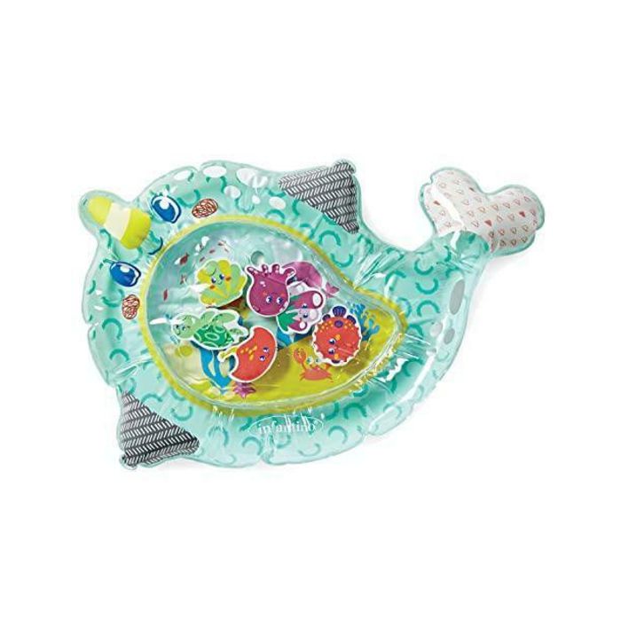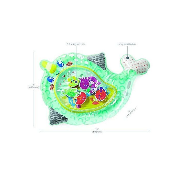 Podloga za vodu, savršena za igru ​​dok beba leži na trbuhu ili sjedi u stolici. Napunite jastuk vodom. Unutra se nalazi 6 morskih životinja koje će plutati i pomicati se kada dijete pritisne podlogu.