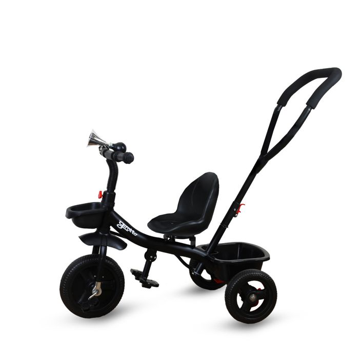 U početnom stadiju, tricikl može služiti kao udobna guralica dok roditelj upravlja ručkom za sigurnost.Kada dijete nauči pedalanju,ručka se uklanja i dijete može samostalno upravljati triciklom,razvijajući motoričke vještine.