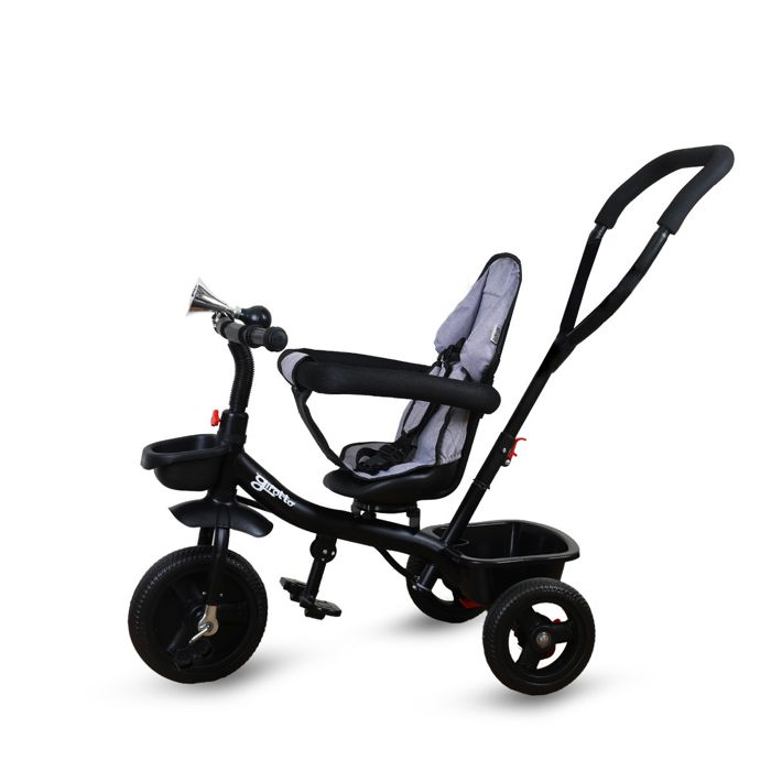 U početnom stadiju, tricikl može služiti kao udobna guralica dok roditelj upravlja ručkom za sigurnost.Kada dijete nauči pedalanju,ručka se uklanja i dijete može samostalno upravljati triciklom,razvijajući motoričke vještine.