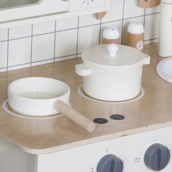 Drvena kuhinja Tinny tvrtke Moni Toys savršen je izbor za male kuhare koji vole stvarati, istraživati i zabavljati se u vlastitom kulinarskom svijetu! Pažljivo izrađena s pažnjom posvećenom detaljima, ima realističan dizajn i nudi beskrajne mogućnosti za maštovitu igru.