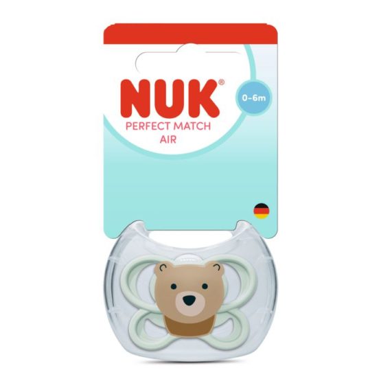 NUK® Perfect Match Air dude pažljivo su dizajnirane kako bi osjetljivoj koži bebe omogućile “disanje”. Jedinstveni oblik ima ekstra velike otvore u štitniku koji omogućuju maksimalan protok zraka i pomažu u sprječavanju slinjenja.