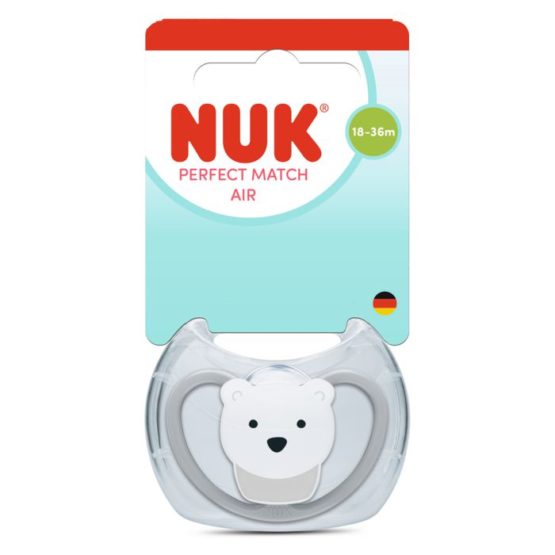 NUK Perfect Match Air dude prihvaća 98% beba i imaju savršen oblik bradavice kako bi podržale prirodni oralni razvoj bebe. Izumljene prije više od 60 godina od strane dječjih stomatologa i liječnika, NUK ortodontske dude oblikovane su prema prirodnom obliku majčine bradavice tijekom dojenja, stvarajući jednostavan prijelaz s dojke na dudu i natrag. Sve dude ne sadrže BPA i mogu se prati u perilici posuđa (samo gornja polica).