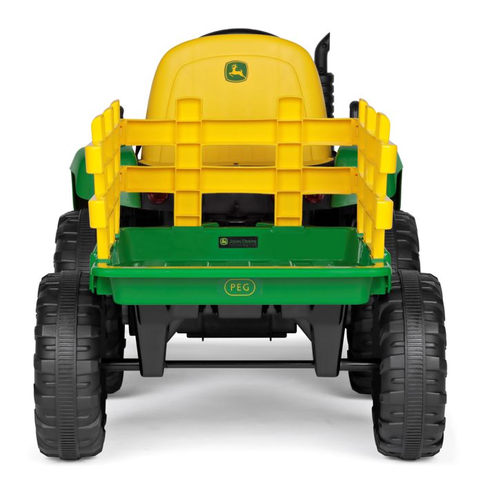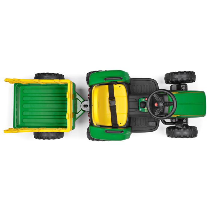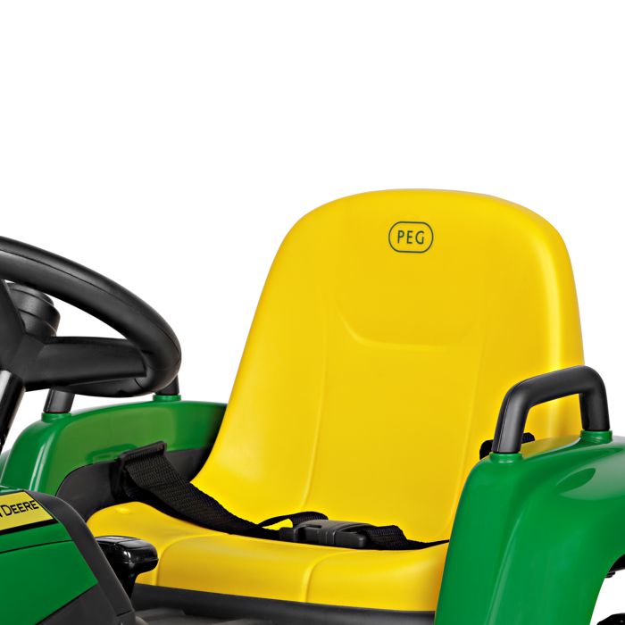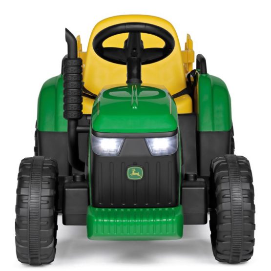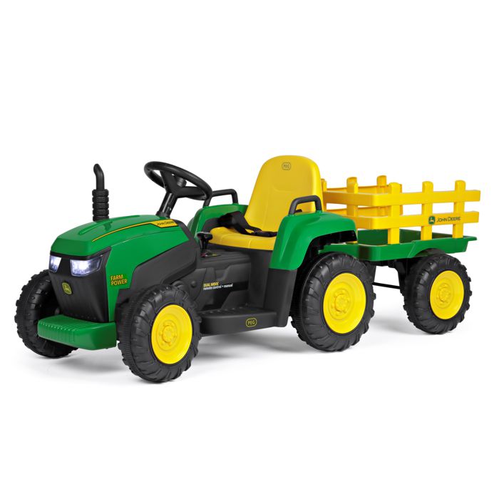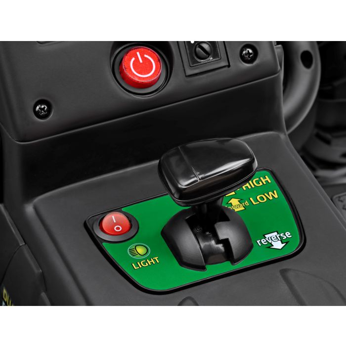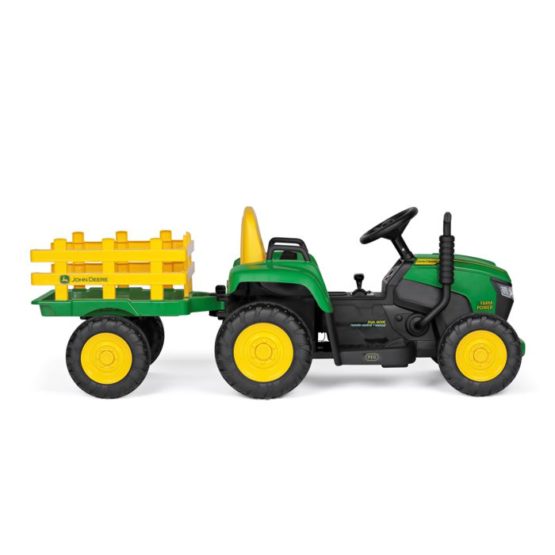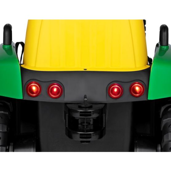 Predstavljamo John Deere Farm Power, snažan i realističan traktor stvoren za djecu istraživače i male poljoprivrednike. Model je opremljen s 12V-5Ah-60Wh punjivom litijevom baterijom, motor sa snagom 70W (2×35W), pogon na dva kotača te dva stupnja prijenosa za vožnju naprijed i jedan stupanj prijenosa za vožnju unatrag (ručna vožnja) ili tri brzine vožnje (pri korištenju daljinskog upravljača). Osim toga, uključuje radio s glazbom, USB ulazom i prednjim LED svjetlima. Gas i kočnica su kombinirani u jednoj papučici, što olakšava korištenje.