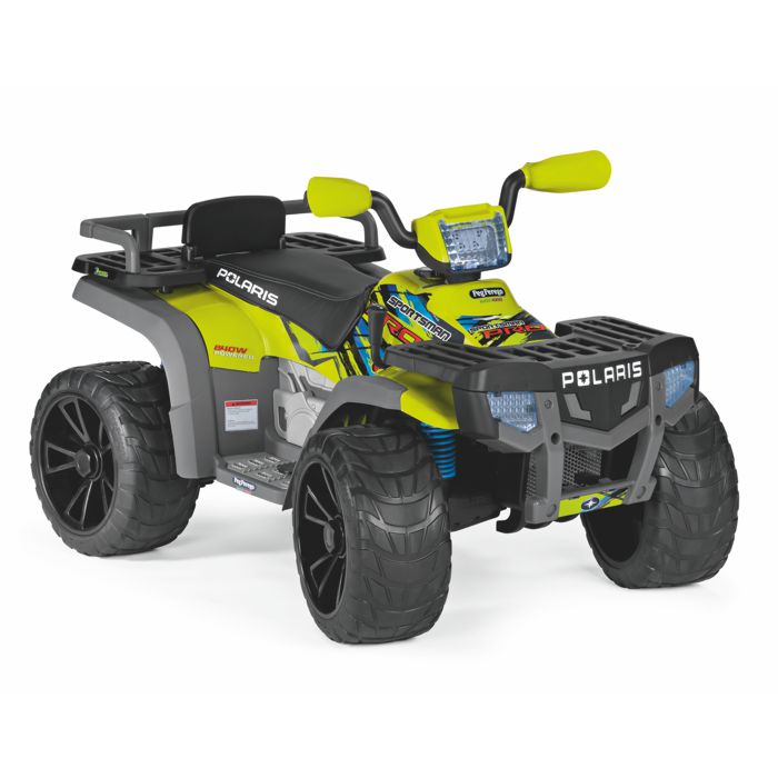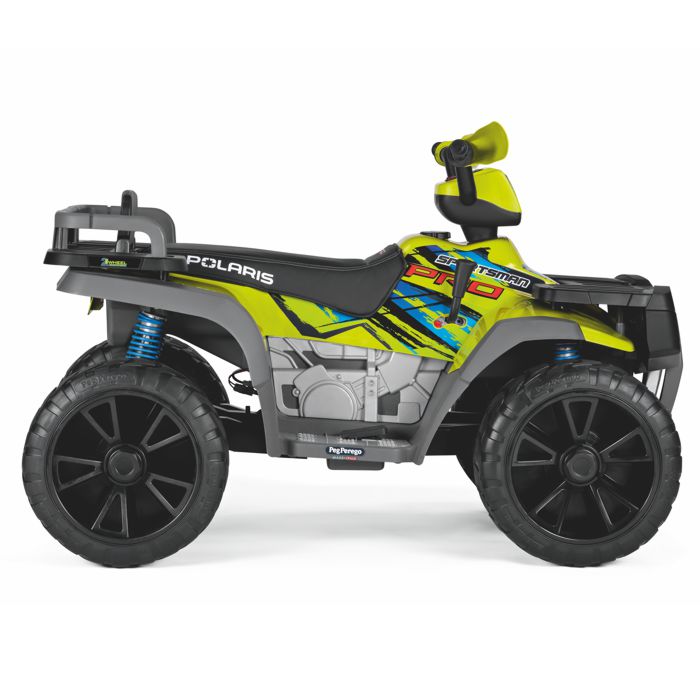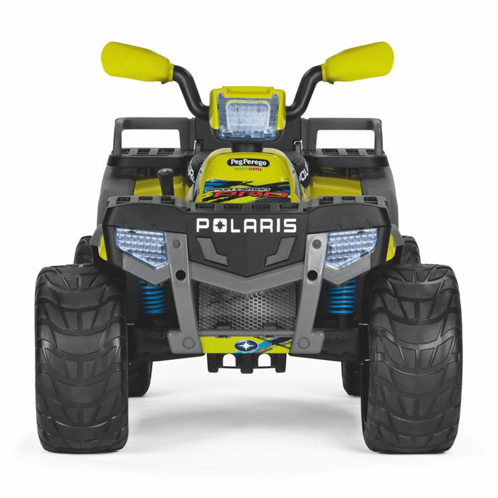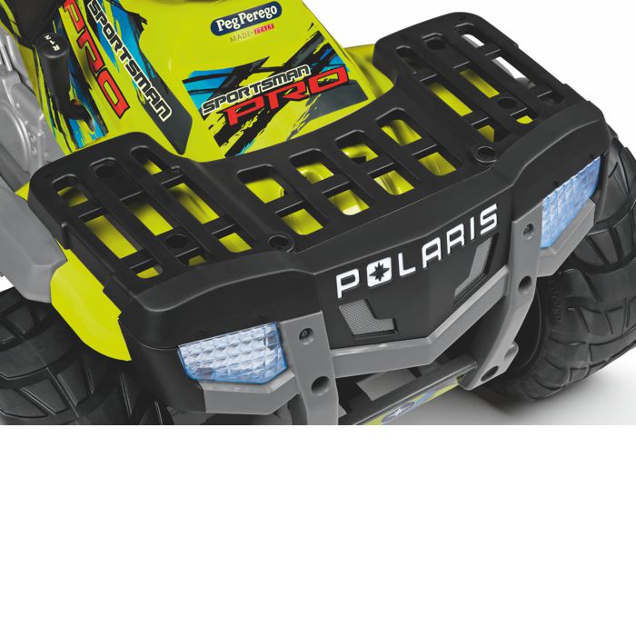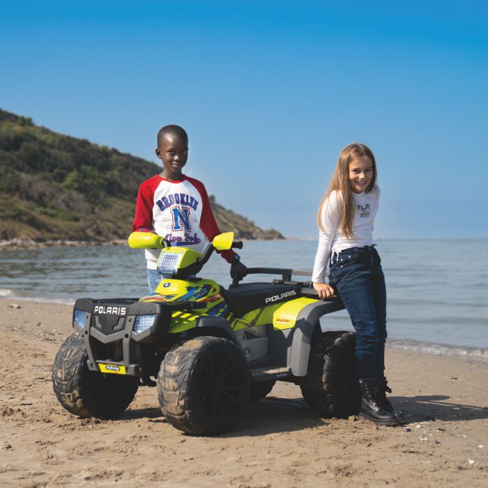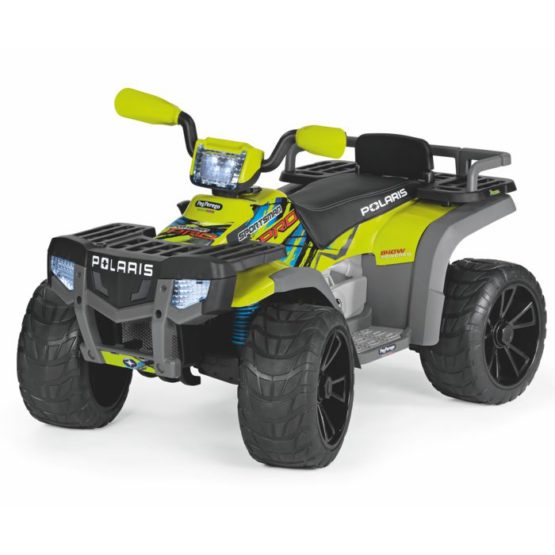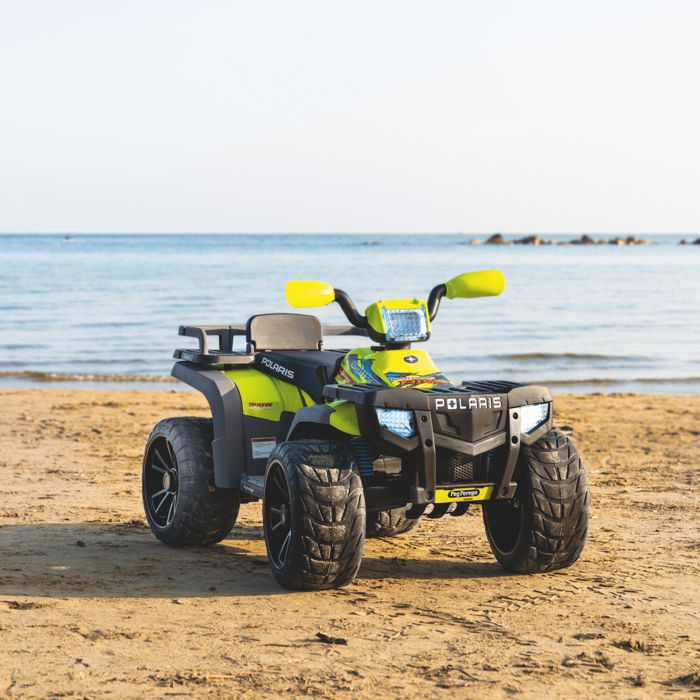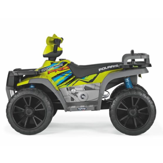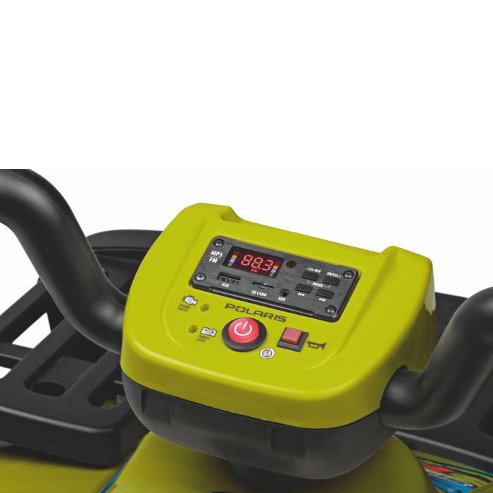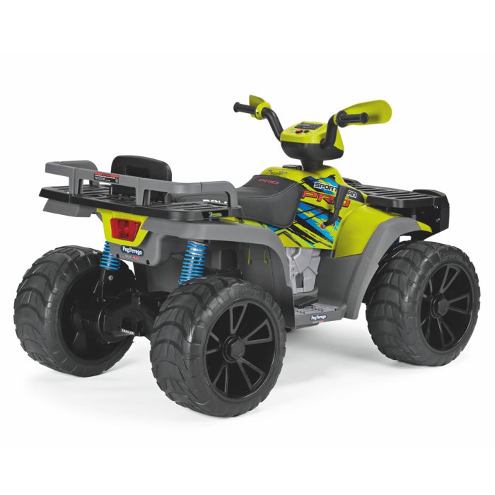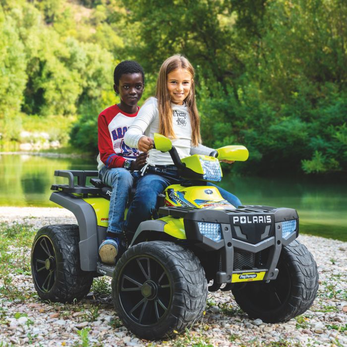 Polaris Sportsman Pro Citrus moćan je terenac s punjivom baterijom od 24Volt/12Ah/300Wh spreman za svaku avanturu! Djeca od 6+ doživjet će vrhunsku izvedbu profesionalne razine na bilo kojem terenu zahvaljujući 2 tiha motora vrhunske snage od 420 W (ukupno 840 W) u kombinaciji s kotačima obloženim gumom za ekstremnu trakciju. Veliko sjedalo od umjetne kože ima naslon za leđa koji može primiti 2 vozača s maksimalnom težinom od 100 kg (220 lbs). Pravi stražnji amortizeri pružaju udobnost i okretnost pri svladavanju prepreka na svim terenima. Višenamjenska nadzorna ploča omogućuje bezbrižno igranje s ispravnim gumbom za pokretanje, LED svjetlima, FM radiom s MP3 ulazom i USB priključkom, kao i indikatorima prazne baterije i preopterećenja motora. Druge karakteristike autentičnog izgleda kao što su prednji i stražnji nosači prtljage, branici, blatobrani, gumeni rukohvati i široki oslonci za noge pružit će vašem djetetu osjećaj da vozi pravu stvar.