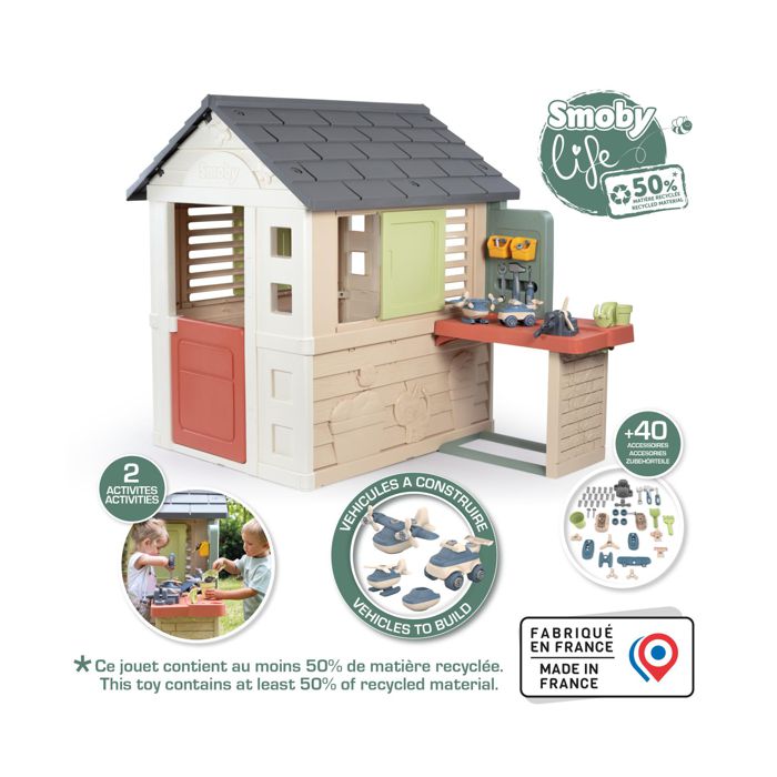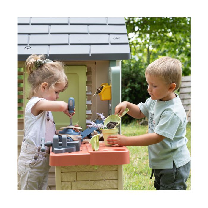 S Smoby Life Nature kućicom s radionicom, vaša će djeca stvarati tisuću novih priča, oponašati odrasle i beskrajno se zabavljati u vrtu sa svojim prijateljima.